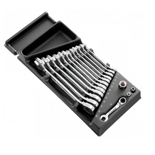 Ce module clés mixtes à cliquet métriques MOD.467BJ13 est livré avec un plateau thermoformé permettant un rangement facile.