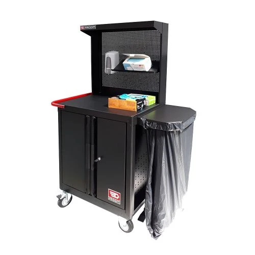 La poste sanitaire SERV.CLEAN de la marque Facom est une solution pour la gestion de la sécurité des hommes sur le lieu de travail. Elle est dotée d’une grande base de rangement avec une étagère réglable en hauteur. Quant à la partie supérieure de cette poste, elle est munie d’un panneau perforé en tôle d’acier, idéale pour la fixation d’outils. Cette partie haute est également conçue avec une tablette inclinée pour la pose des produits sanitaires. Un support sac poubelle amovible est intégré pour la collecte des déchets.