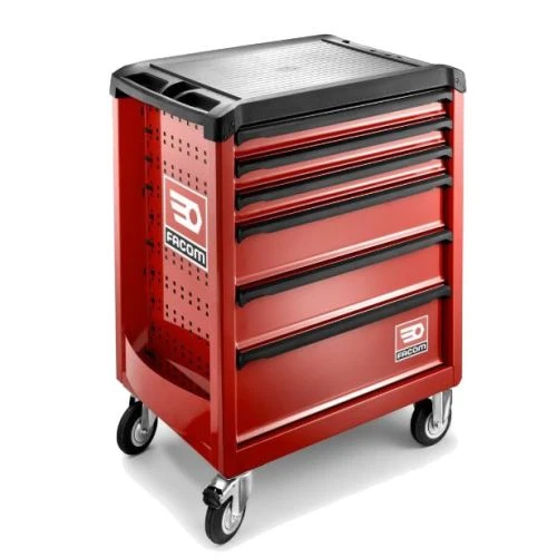 Cette servante roll 6 tiroirs – (3 modules par tiroir) a été conçue pour résister à une charge statique de 700 kg grâce à son plan de travail renforcé. Ses poignées situées de chaque côté permettent de soulever la servante si des obstacles se présentent.